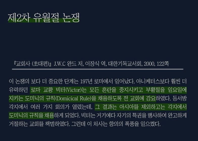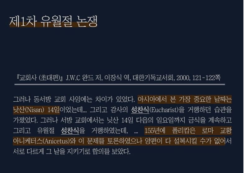예수님의 말씀대로 교회는 계속해서 새언약의 유월절을 소중히 지켰습니다.