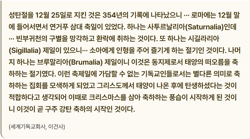 예수님 탄생일을 임의로 만들어내어 축하하는 풍습을 만들었다는 게 이해가 안돼요..